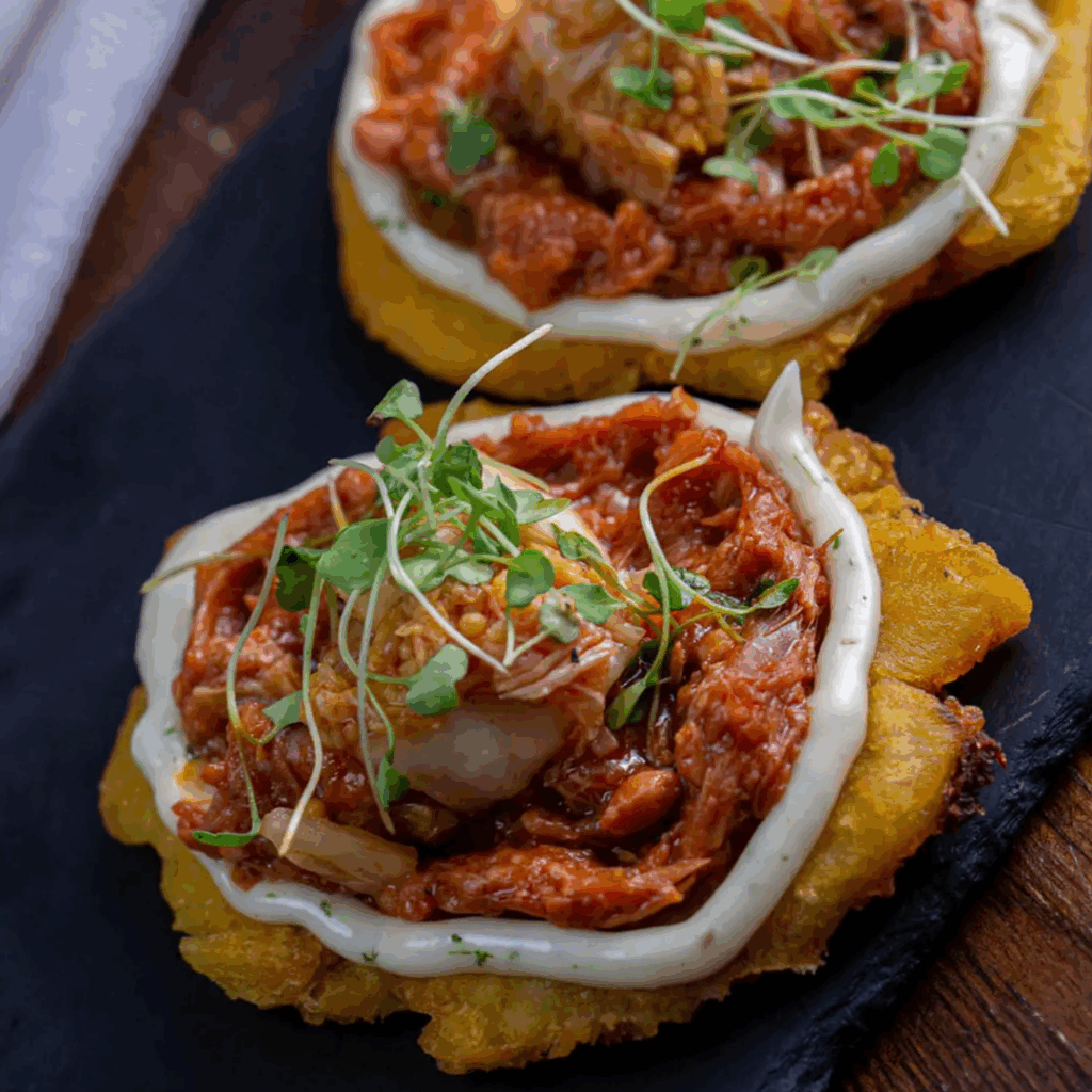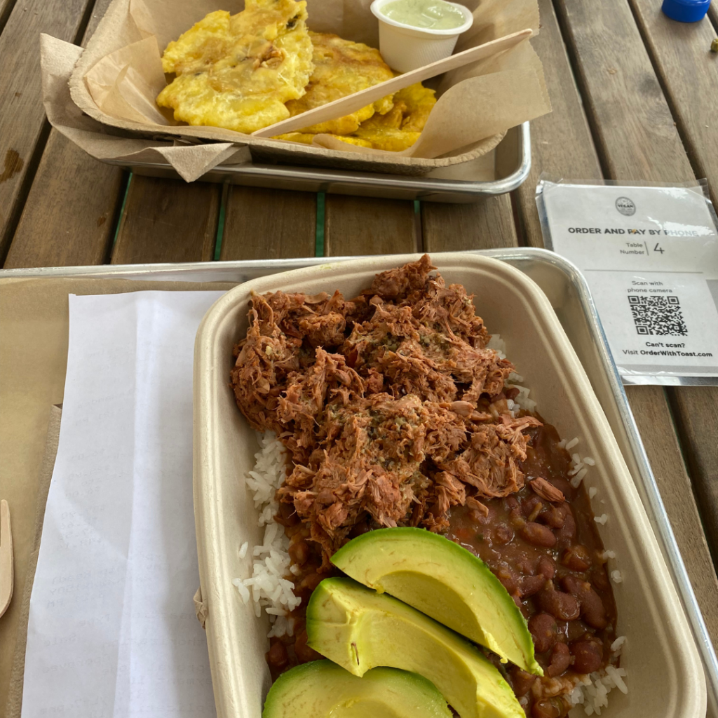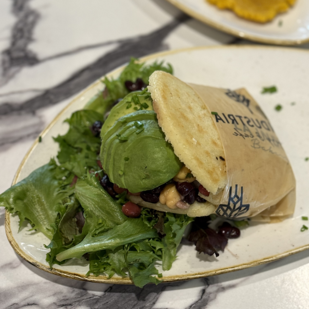 We ordered crispy tostones and hearty veggie arepas. These arepas were generously filled with a mix of beans, fresh vegetables, and creamy avocado, making them both satisfying and flavorful.