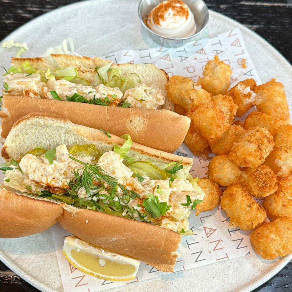 Vegan Lobster Roll – tender jackfruit tossed in a buttery, savory dressing, served in a toasted hot dog bun. It perfectly mimics the texture of lobster while keeping it 100% plant-based.